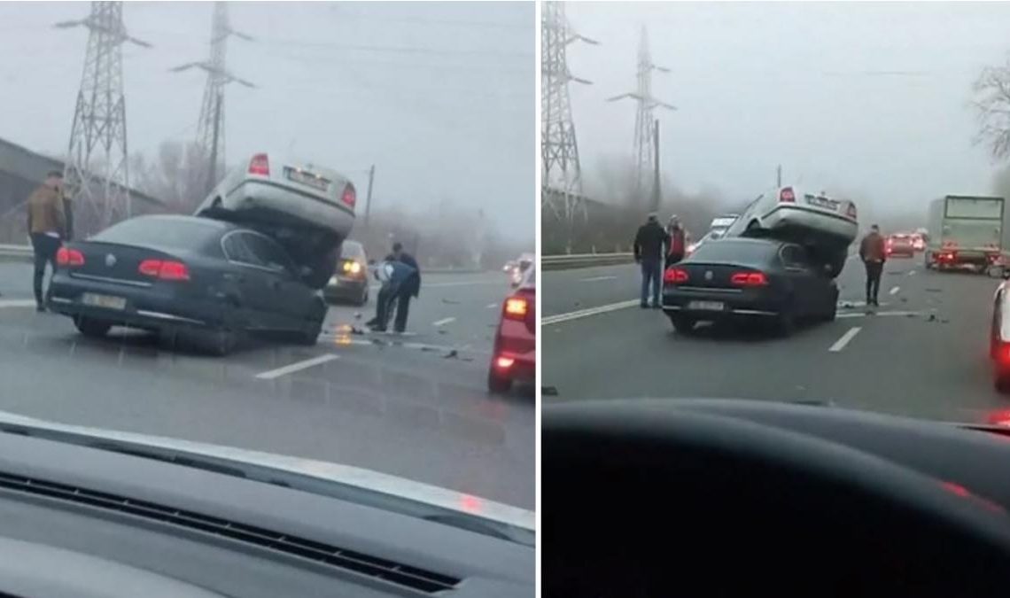 Patru maşini s-au ciocnit cu putere, până au ajuns, practic, unele peste altele. Din fericire nimeni nu a fost rănit grav.