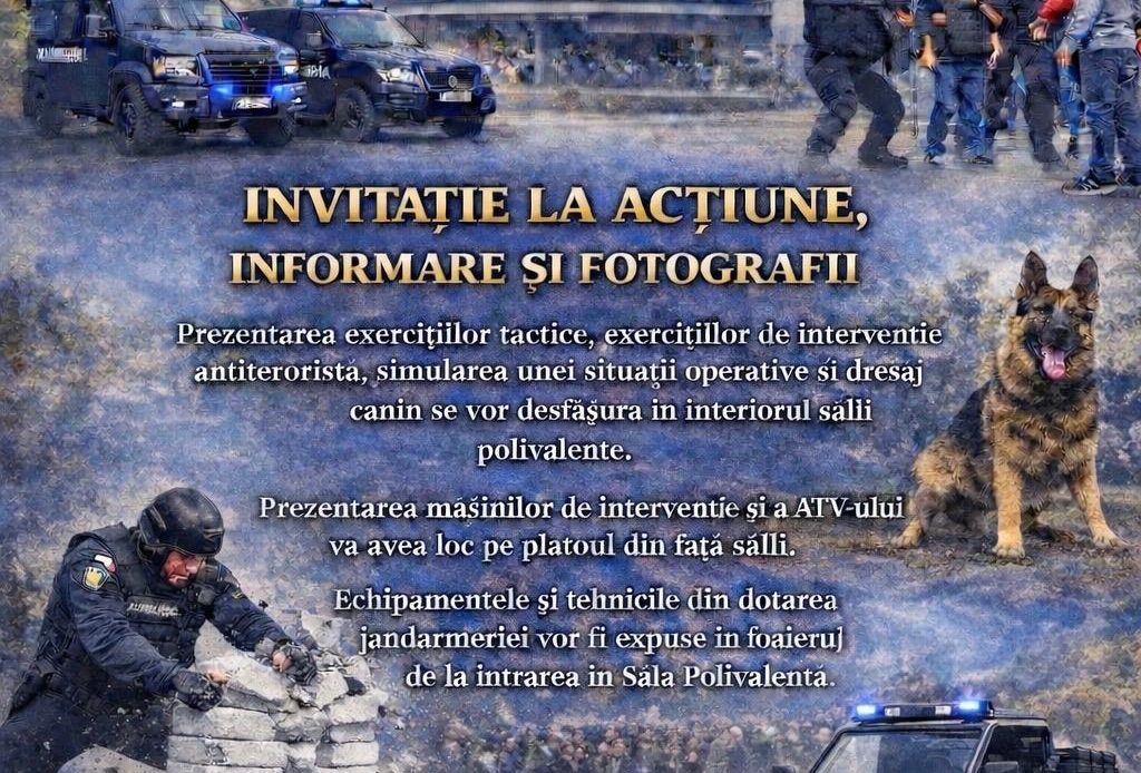 Jandarmii brăileni își doresc să fie mai aproape de oameni și să împărtășească, într-un cadru deschis și prietenos, o parte din activitatea lor. Cei prezenți vor putea urmări în interiorul Sălii Polivalente exerciții tactice și intervenții antiteroriste, o simulare a unei situații operative, precum și demonstrații de dresaj canin. De asemenea, pe platoul din fața sălii vor fi expuse mijloacele auto de intervenție, iar în foaierul sălii vor putea fi descoperite echipamentele și tehnica din dotare.