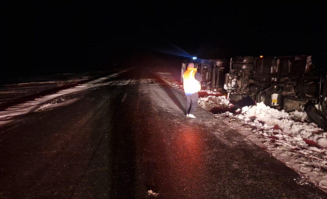 Polițiștii s-au deplasat la fața locului și au stabilit faptul că un bărbat de 57 de ani, din județul Ialomița, în timp ce conducea ansamblul rutier încărcat cu cereale, nu ar fi adaptat viteza la condițiile de drum și a derapat, părăsind partea carosabilă. În urma evenimentului au rezultat doar pagube materiale.